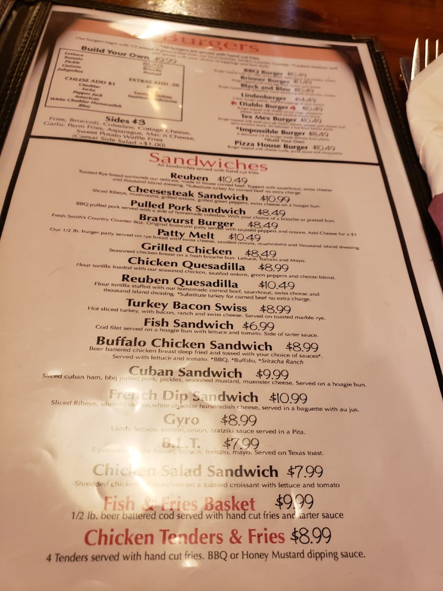 “ Traveled up to buy a car from Columbus. Stopped at buckeye and was unhappy with the wait time so we came here. Couldn’t have been happier with the service, food, or atmosphere. Sat down and were almost immediately asked if we wanted food menus. As soon as menus were provided we were asked for our drink orders. Cold fresh beer. While we were waiting on our food a guy came out of the kitchen carrying pizzas. Come to find out, they don’t serve pizza yet. However, we were the first to try it, and I’m here to tell you it’s excellent. Thinner crust, but not too thin. Just thin enough to not be bready. Sweet sauce with prevalent basil. Obviously fresh cheese. Perfectly flavored pepperoni. We’ll be back just for pizza’s! Our food only took minutes to hit the bar, and by the time it did we were already full. It didn’t stop me from devouring my Rueben and most of my sweet potato waffle fries. We met the previous owner who is helping the new owners transition the business, and both parties seem equally invested in the livelihood and quality of the business. I’ll certainly return again even if solo just for the atmosphere. The entire place was well decorated and such a unique building that a guy could spend a whole day there just observing all the little things. Could not recommend more! ”